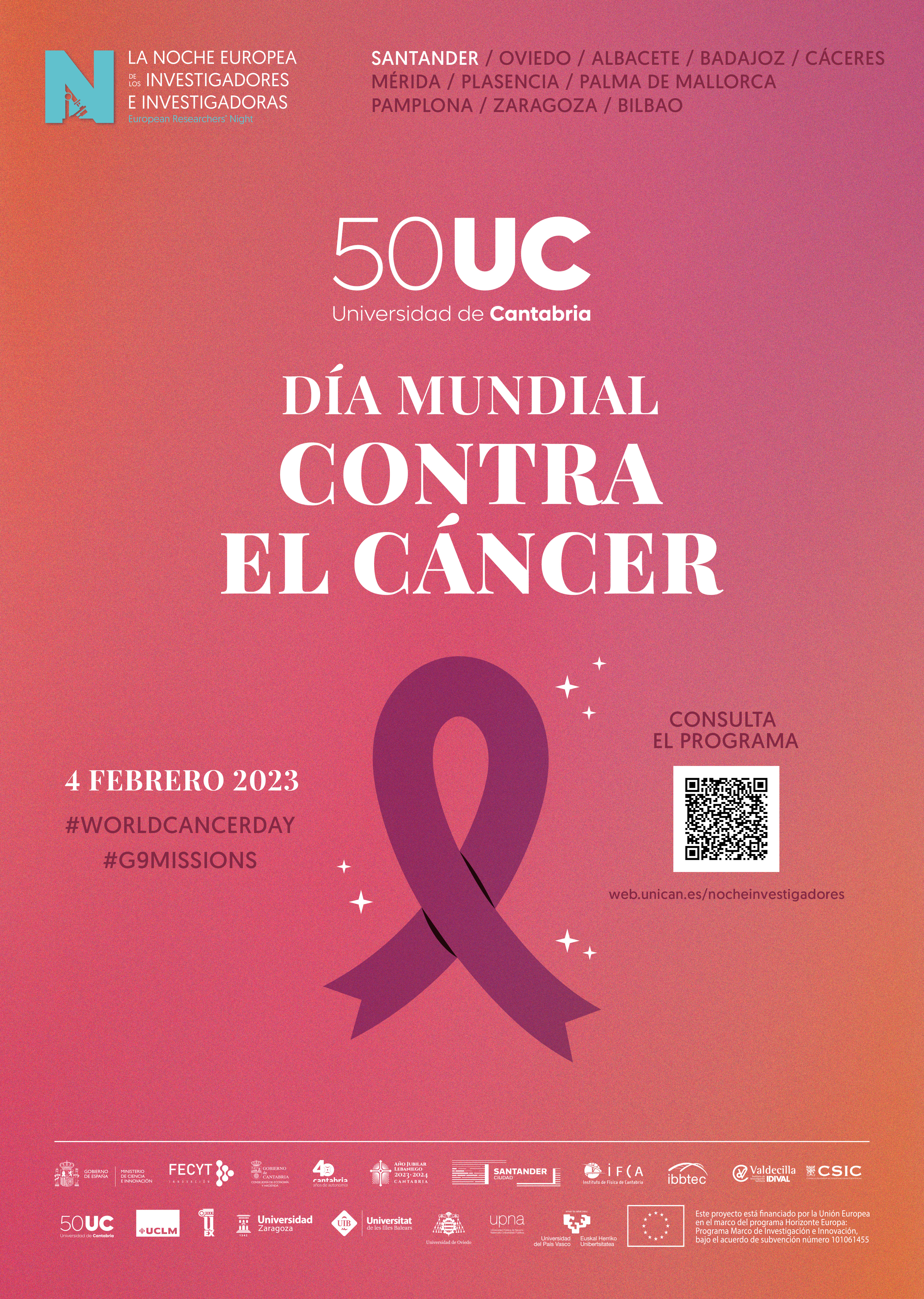 La Unidad de Cultura Científica y de la Innovación (UCC+I) de la Universidad de Cantabria (UC) se une a la campaña del Día Mundial contra el Cáncer que tendrá lugar el próximo 4 de febrero. A través de diversas actividades la UC pretende promover la necesidad de seguir impulsando la investigación, así como la importancia de la prevención, un diagnóstico precoz, así como de unos cuidados justos y equitativos