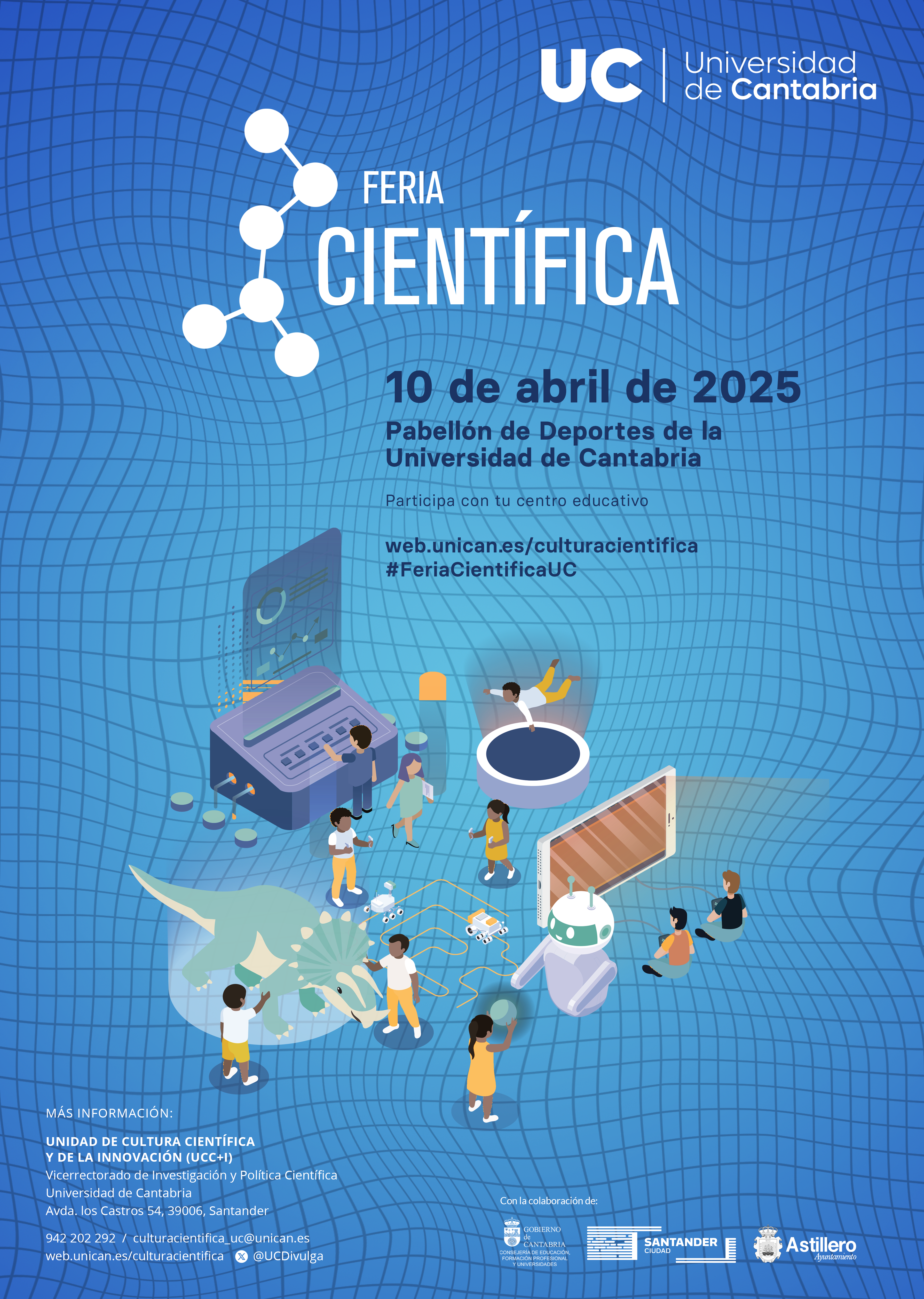 La Feria Científica cuenta con la colaboración de la Consejería de Educación, Formación Profesional y Universidades del Gobierno de Cantabria, el Ayuntamiento de Santander y el Ayuntamiento de Astillero.