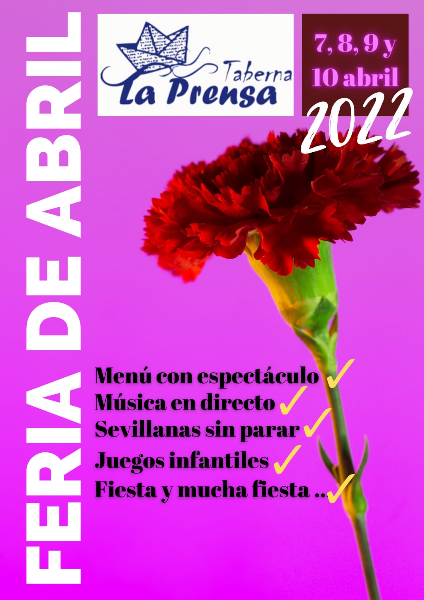 La Taberna La Prensa celebra la Feria de Abril del 7 al 10 de abril. Menú con espectáculo a cargo del grupo Son de Flamenco, sevillanas y juegos infantiles durante toda la jornada.