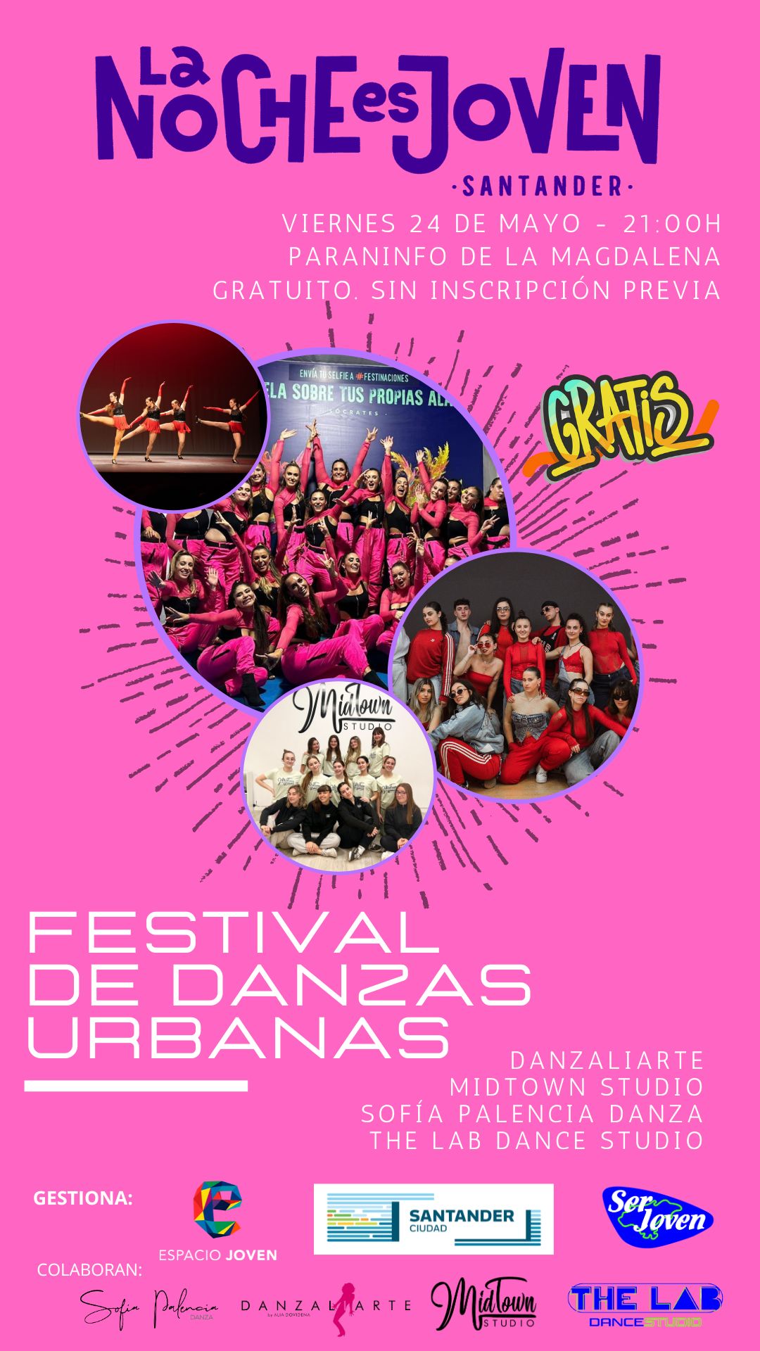 El programa ofrecerá, el 24 de mayo a las 21:00 h, un Festival de Danzas Urbanas en el Paraninfo de la Magdalena en el que participarán cuatro compañías: ‘Midtown Studio’, ‘The Lab Dance Studio’, ‘Sofía Palencia Danza’ y ‘Danzaliarte’. El evento, gratuito y sin inscripción previa, estará presentado por Diego Balbontín.