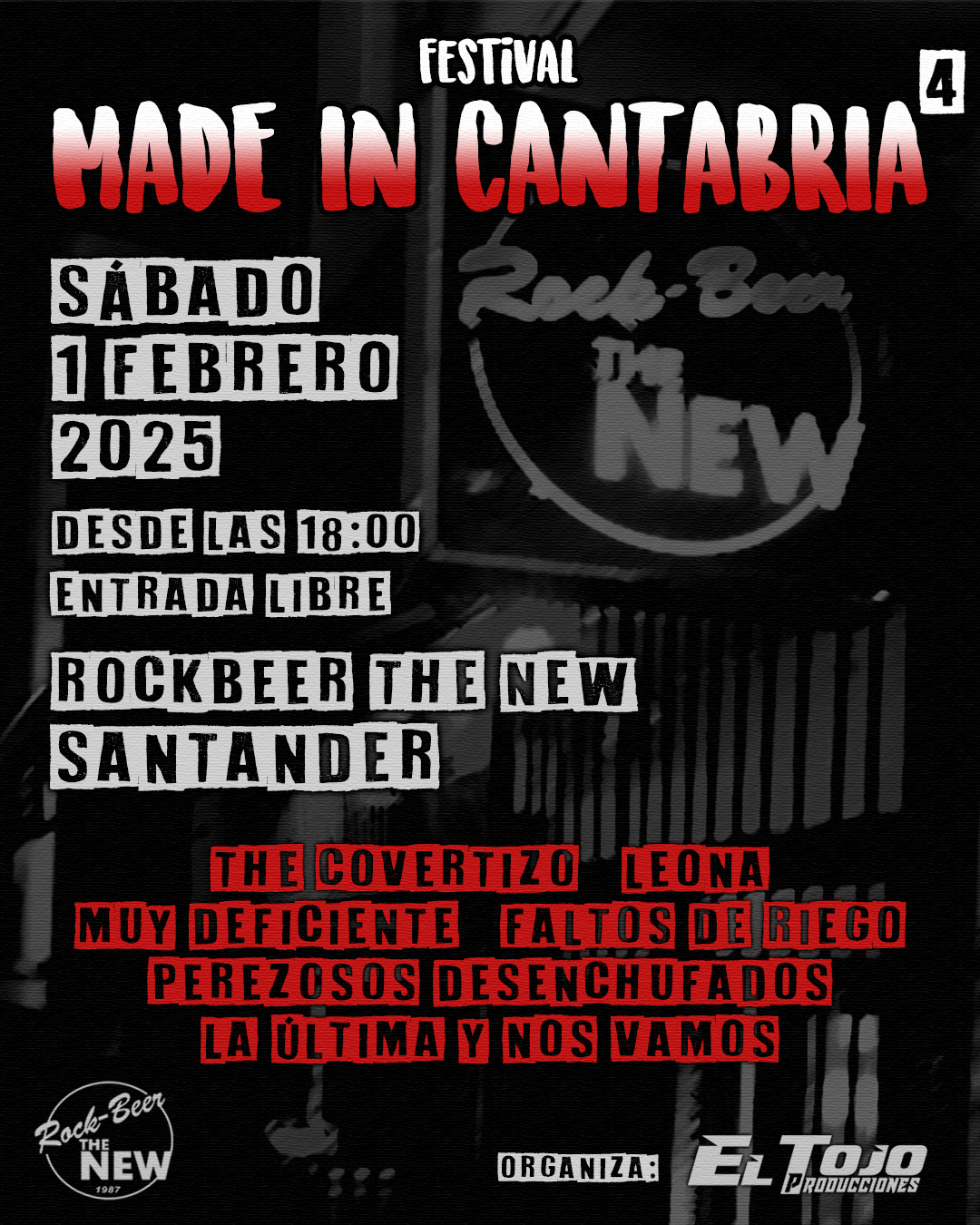 El festival se realizará en el Rock Beer The New, mítica sala de conciertos santanderina, situada en la calle Peñas Redondas 15 de la capital cántabra. Por su escenario pasarán las bandas The Covertizo, Faltos de Riego, Perezosos Desenchufados, Leona, Muy deficiente y La última y nos vamos, que ofrecerán enérgicos conciertos en los que podremos disfrutar de estilos como el rock, el pop, el indie o el punk.
