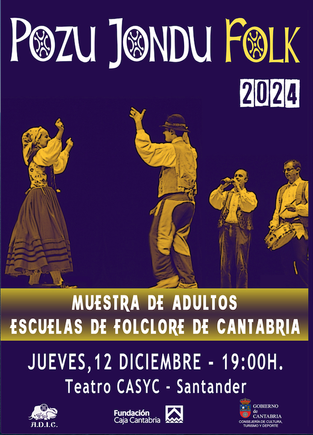 El teatro Casyc de Santander acoge el jueves 12 de diciembre, la Muestra de Adultos de las Escuelas de Folclore de Cantabria, dentro del Festival Pozu Jondu Folk. Un evento organizado por la Asociación ADIC, que cuenta con la colaboración de la Fundación Caja Cantabria. El acto empezará a las 19:00 horas, con entrada gratuita.