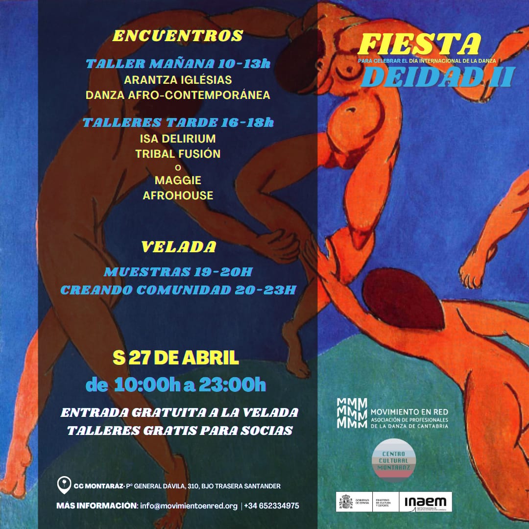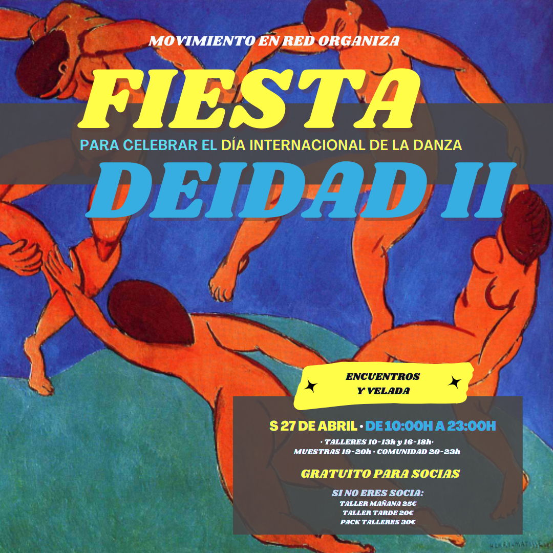 El 29 de abril se celebra el Día Internacional de la Danza 2024 y, desde Movimiento en Red, han preparado la Fiesta Deidad II, un evento muy especial para festejarlo juntos el sábado 27 de abril, en el Centro Cultural Montaraz.