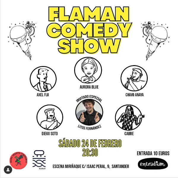 Flaman Open Mic presenta Flaman Comedy Show: cinco cómicos más un cómico invitado.