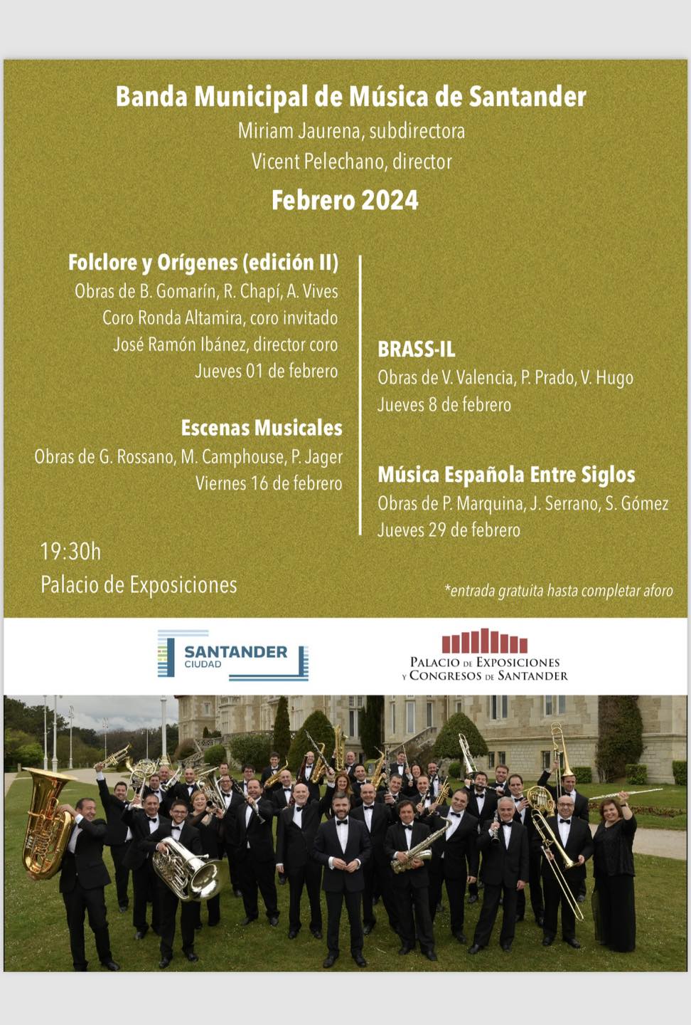 La Banda Municipal de Música de Santander ofrece, dentro de su programación de febrero, cuatro conciertos que tendrán como escenario el Palacio de Exposiciones y Congresos de Santander.