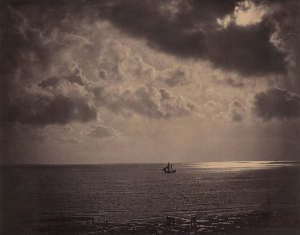 Con su magistral manejo de la luz, entendida en toda su trascendencia, al tiempo que experimentaba sus posibilidades técnicas, Le Gray se propuso afrontar el reto de dominar la captación del mar. La notable reducción de los tiempos de exposición que ofrecía la revolucionaria técnica del colodión húmedo, de la que fue pionero, le impulsó a profundizar en la fotografía instantánea. Para ello, la naturaleza se convirtió en su principal campo de ensayo. La imposibilidad de registrar simultáneamente la mar y el cielo sin perder definición le llevó a combinar dos negativos: uno para los celajes y otro para la superficie marina, unidos en la línea del horizonte, singularmente potenciada.