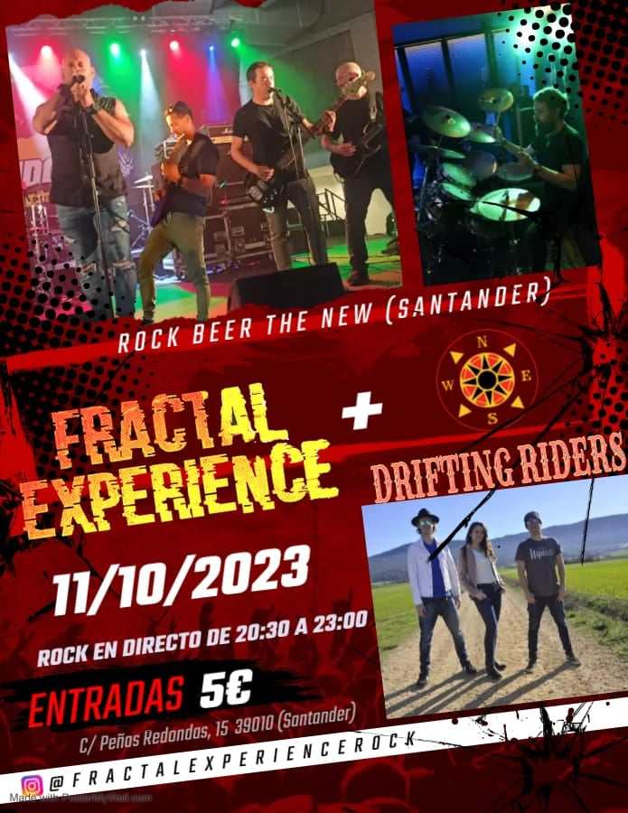 La sala Rock Beer the New presenta en directo a las bandas Fractal Experience y Drifting Riders el miércoles 11 de octubre de 20:30 a 23:00 h.
