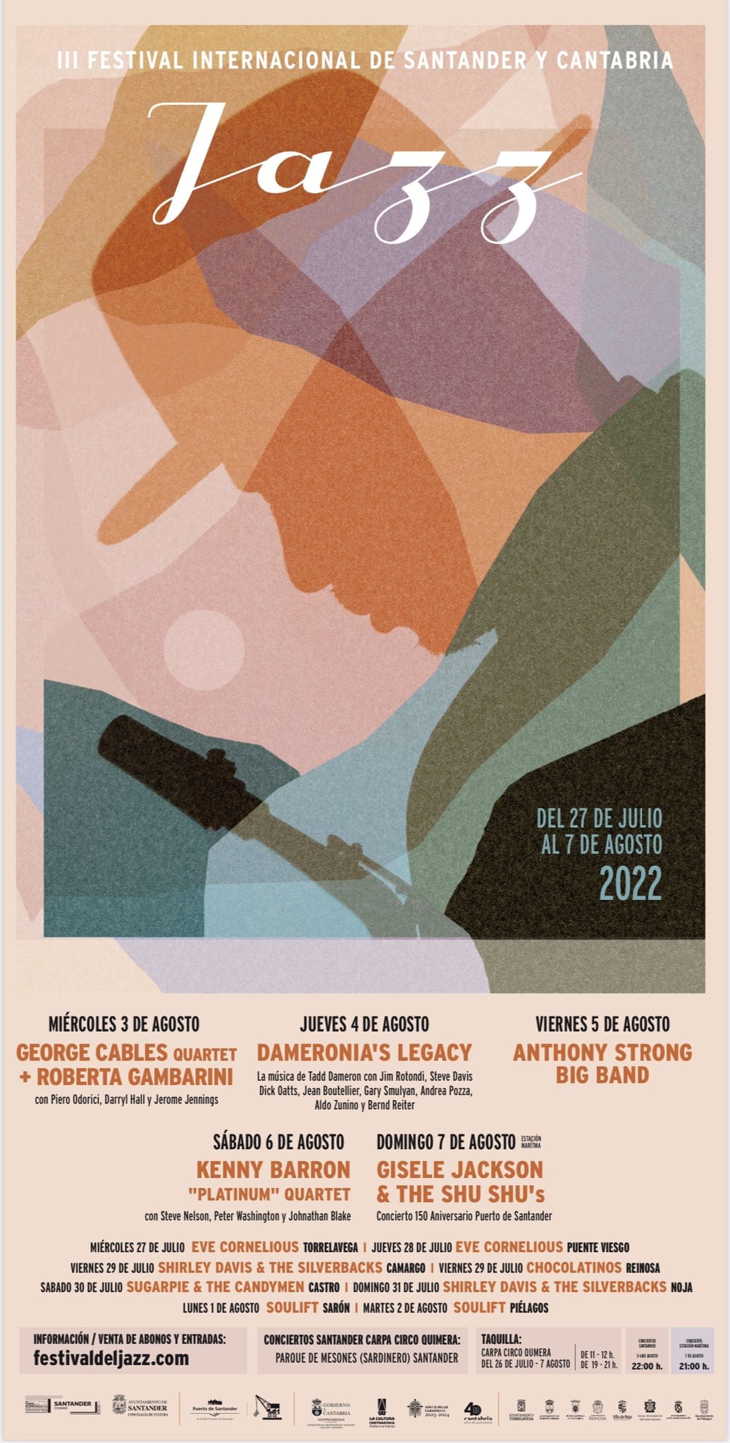 La tercera edición del Festival Internacional de Jazz de Santander y Cantabria, rebautizado como JazzSyC, vuelve a la carpa del Circo Quimera, en el Parque de Mesones, donde celebrará cuatro conciertos del 3 al 6 de agosto, con el apoyo de la Concejalía de Cultura. Además, la clausura del festival tendrá lugar el 7 de agosto en la Estación Marítima, dentro de la programación del 150 aniversario del Puerto de Santander.