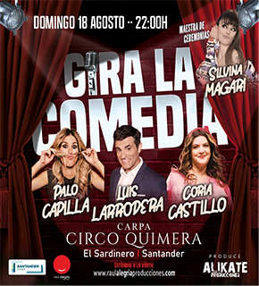 Gira La Comedia es la gira de cómicos más famosa de España. En esta ocasión, bajo la carpa del Circo Quimera podremos disfrutar de Luis Larrodera, conocido presentador de televisión (Un, dos, tres, Alta Tensión, El Traidor, Etc.) que también participado en las mañanas de Cadena Dial, varias películas de cine y diversas obras de teatro.