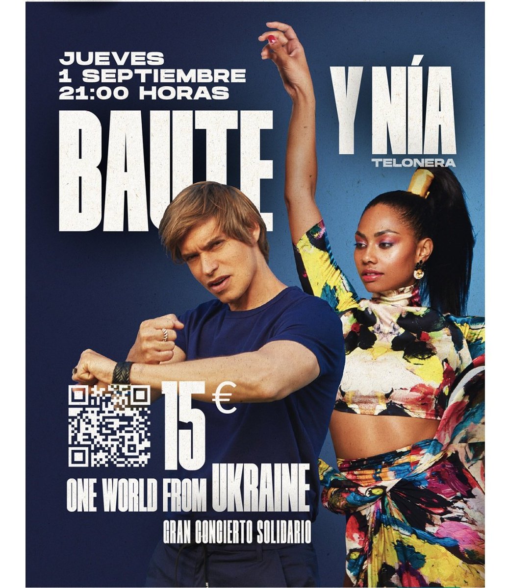 Llega una de las citas más esperadas de la programación del Festival Intercultural de Santander. Se trata del concierto ‘One world from Ukraine’, protagonizado por Carlos Baute y Nía, como telonera, que se celebrará el 1 de septiembre, a partir de las 22.00 horas, con entradas al precio de15 euros y con el 100% de los beneficios a favor de la Asociación de Ucranianos Oberig.