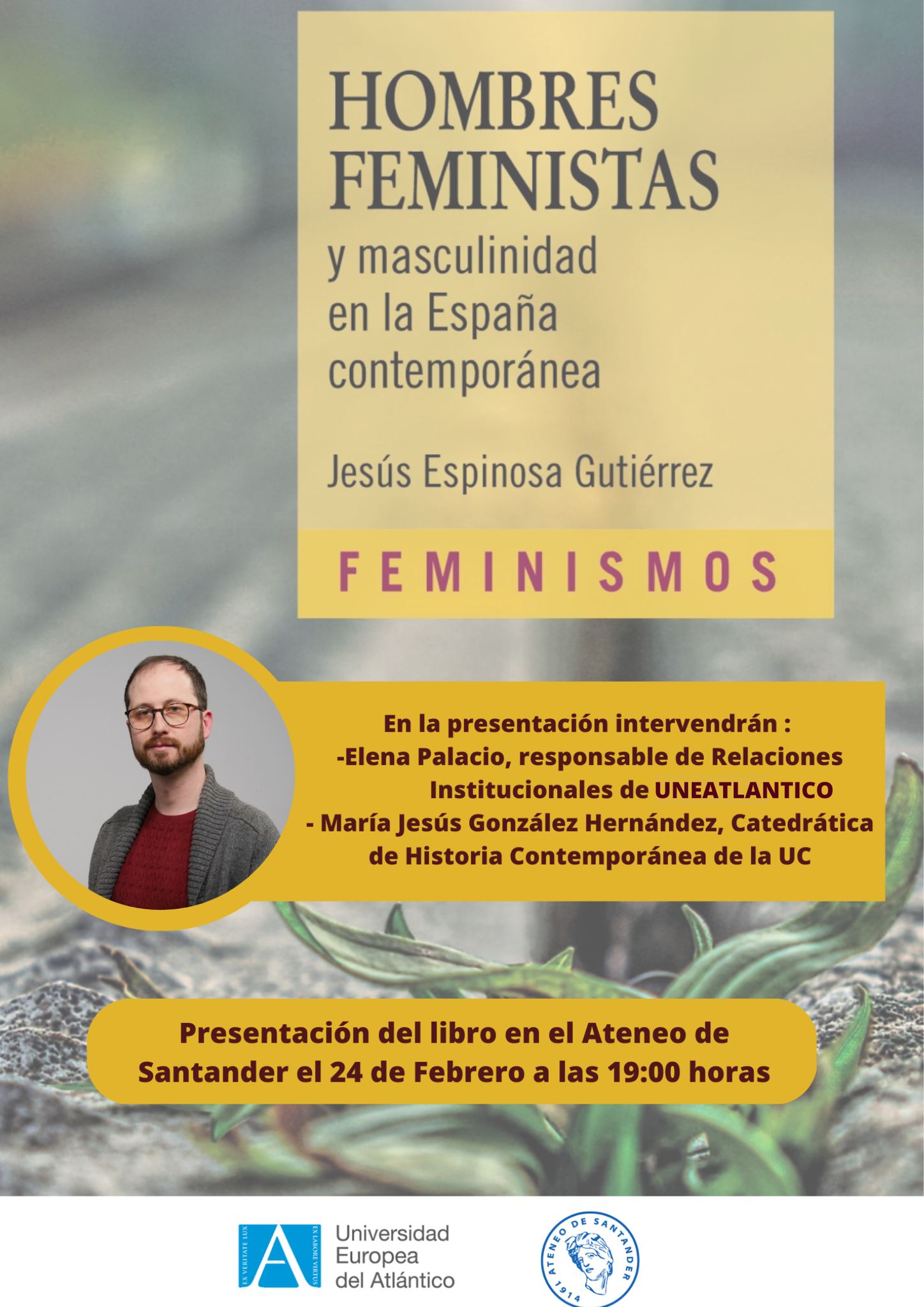 Jesús Espinosa, Doctor en Historia Contemporánea por la Universidad de Cantabria, nos hablará en el Ateneo de Santander acerca de su libro “Hombres feministas y masculinidad en la España contemporánea”. En la presentación intervendrán Elena Palacio, responsable de Relaciones Institucionales de Uneatlántico, y Mª Jesús González Hernández, catedrática de Historia Contemporánea de la UC.