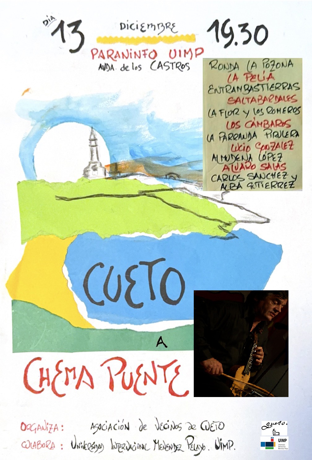 El sábado 13 de diciembre, la Asociación de Vecinos de Cueto celebra un homenaje al reconocido músico Chema Puente, una de las figuras más destacadas en la difusión de la música tradicional cántabra. El acto tendrá lugar en el Paraninfo de la Universidad Internacional Menéndez Pelayo (UIMP), en el campus de Las Llamas, a las 19:30 h.