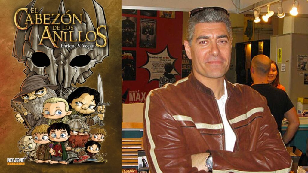 El segoviano Enrique Vegas comenzó ilustrando mundos de fantasía en la línea de John Buscema o Barry Windsor Smith, pero tras su paso por el mundo de la animación, adaptó su estilo a líneas más infantiles, lo que le llevó a especializarse en sus característicos personajes «cabezones». Comenzó así una línea de versiones paródicas de grandes iconos de la cultura popular, con ‘Arbillos’, inspirado en ‘Aliens’, como primer hito. A esta obra le siguieron otras muchas: ‘Los cabezones de las galaxias’, ‘Cabezón Jones’, ‘Espiderman’, ‘Repredador’… A esta larga lista de títulos, todos ellos publicados por Dolmen Editorial, se ha sumado en este 2023 ‘Takeshi’, una intriga de espadachines en el Japón feudal.n 2022.