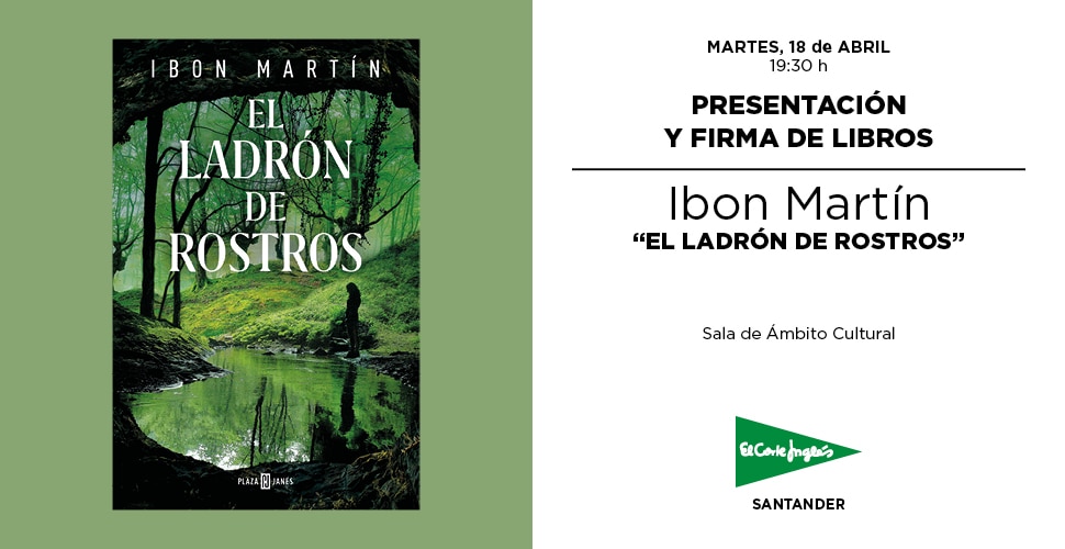 El escritor de suspense Ibon Martín, estará el próximo martes en El Corte Inglés para presentar y firmar ejemplares de su última novela: El ladrón de rostros, una nueva aventura de la inspectora Ane Cestero, que arranca con el hallazgo de un cuerpo mutilado en Sandaili, una humilde ermita excavada en roca.