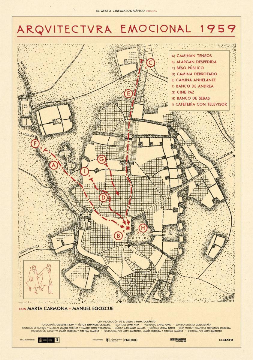 Arquitectura emocional 1959 es la cinta ganadora del Premio Goya 2023 en la categoría cortometraje. Ambientada en el Madrid de 1959 nos cuenta la historia de Sebas y Andrea, dos estudiantes de Filosofía y Letras que acaban de conocerse. Su relación se extiende a lo largo del curso académico 58-59 pero las diferencias de clase y la radical politización de un grupo de estudiantes, entre los que se encuentra Andrea, precipitan la ruptura. Sin embargo, algo más grande que ellos parece intervenir para reescribir el destino de su relación, algo que podría tener que ver con la arquitectura.