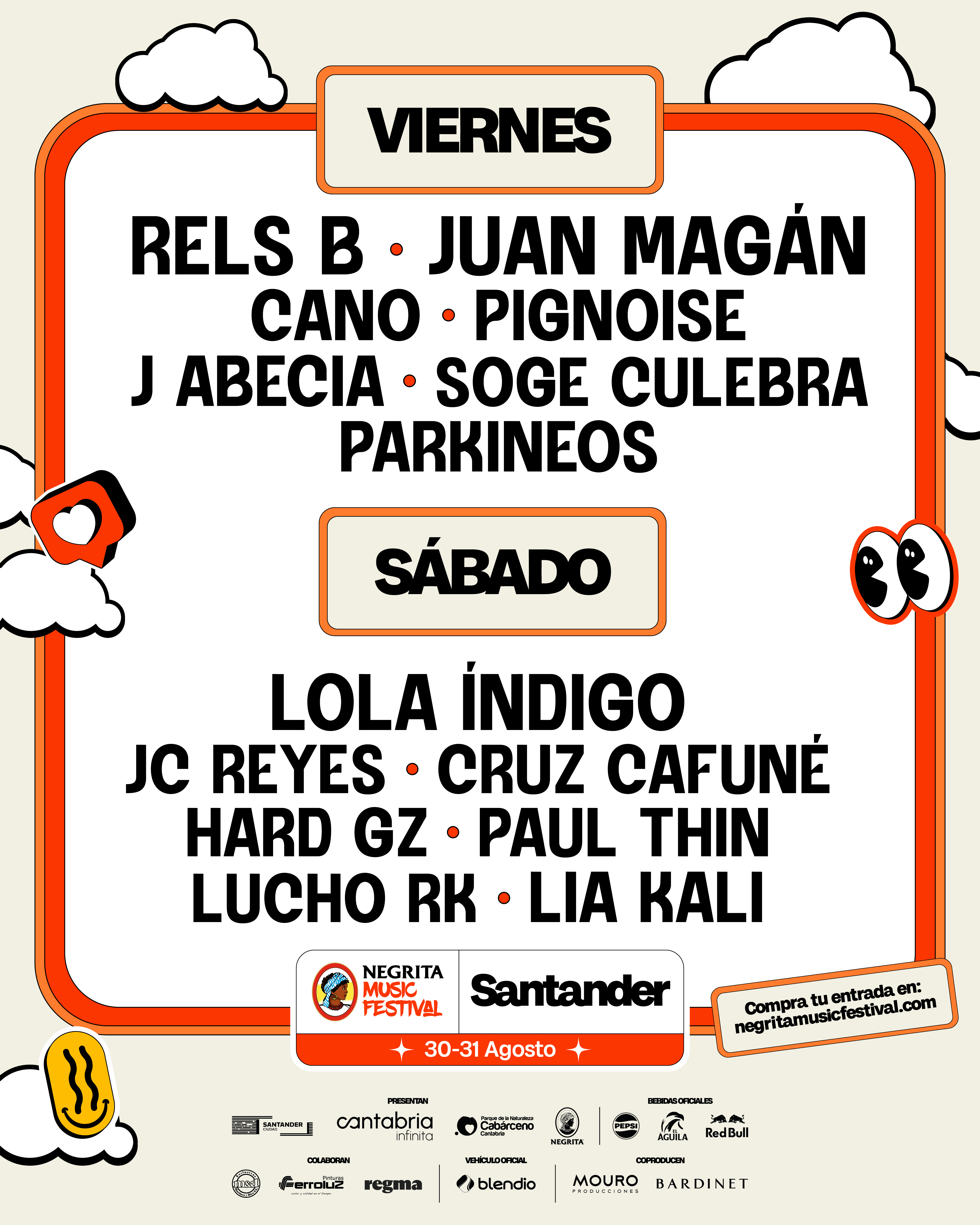 Negrita Music Festival Santander, que celebrará su tercera edición el viernes 30 y el sábado 31 de agosto junto a la playa de la Virgen del Mar, ha anunciado el reparto de artistas que participarán en cada jornada y ha puesto a la venta las entradas de día, que tienen un precio de 35 euros en zona general y 60 euros en zona VIP.