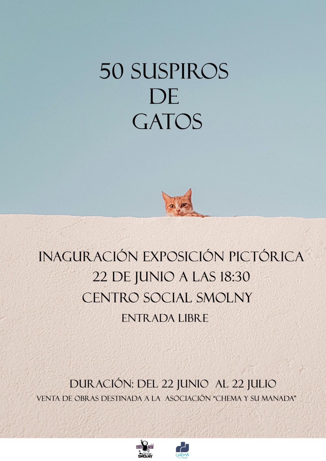 El Centro Social Smolny será el escenario de la exposición pictórica “50 suspiros de gato” que, con carácter solidario, ha organizado la artista Mar Pajarón, implicada en la defensa y reivindicación de los derechos de los animales.