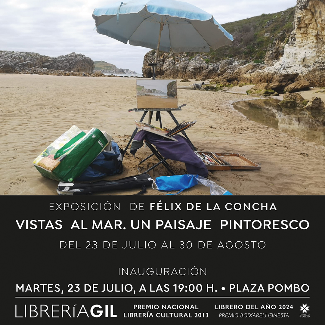El martes 23 de julio, a las 19:00 h. tendrá lugar en Librería Gil de la Plaza de Pombo la inauguración de la exposición "Vistas al mar. Un paisaje pintoresco", de Félix de la Concha, que se podrá visitar hasta el 30 de agosto.