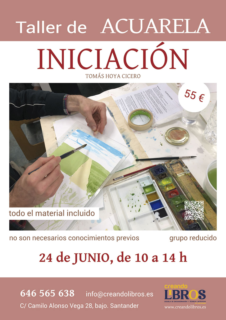 Pensado para aquellas personas que siempre han querido probar la acuarela. Con todos los materiales incluidos, este taller quiere servir como un primer contacto con la técnica de la acuarela. Se hablará de materiales, se trabajarán técnicas básicas sobre seco y sobre húmedo; y sobre todo se pintará todo lo que se pueda intentando eliminar posibles miedos y pasarlo bien.