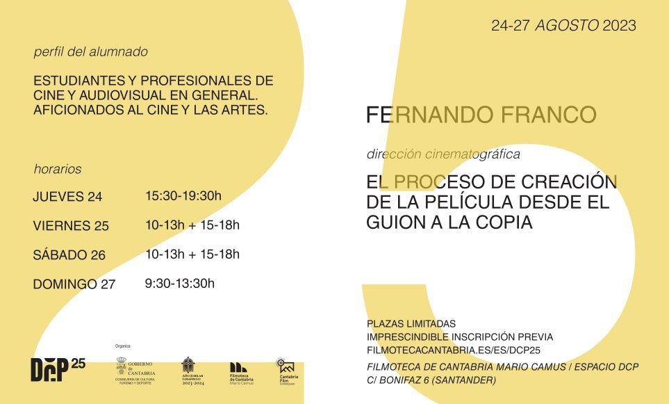 Las plazas son limitadas y la inscripción gratuita se puede hacer a través de la web de la Filmoteca de Cantabria Mario Camus (filmotecacantabria.es/es/dcp25).