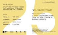 En esta ocasión, se trata de un taller que dedicará su actividad durante cuatro días, del 24 al 27 de agosto, a la dirección cinematográfica, para lo que contará con la participación del director, guionista y montador Fernando Franco.