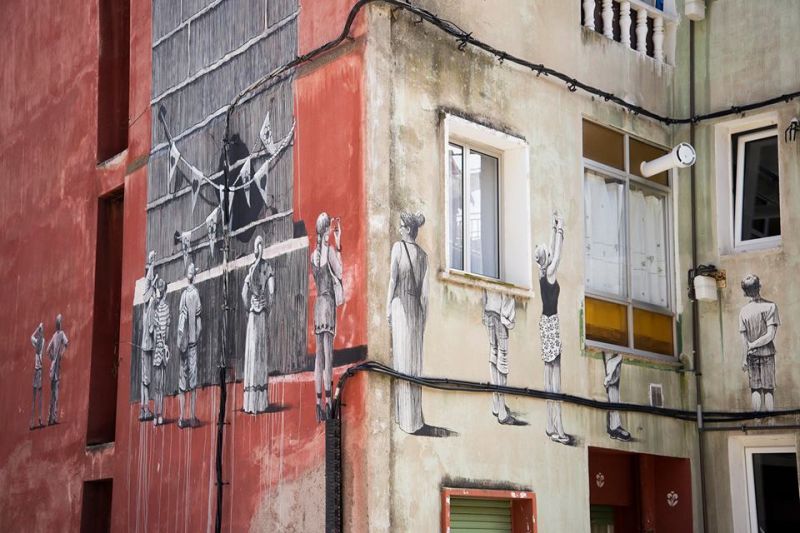 Esta intervención mural, la huella que dejó el artista extremeño Daniel Muñoz, "SAN", durante la octava edición del Festival de Arte Público, "Desvelarte", puede verse en la calle San Sebastián, número, 14.