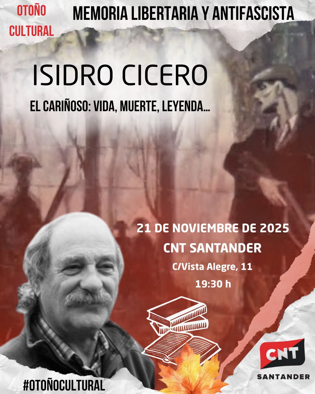 Dentro de las actividades programadas en el ciclo "Otoño cultural, Memoria Libertaria y Antifascista", Isidro Cicero, autor del clásico "Los que se echaron al monte", hablará de la vida de "El Cariñoso", maqui histórico cántabro y también integrante de la CNT.