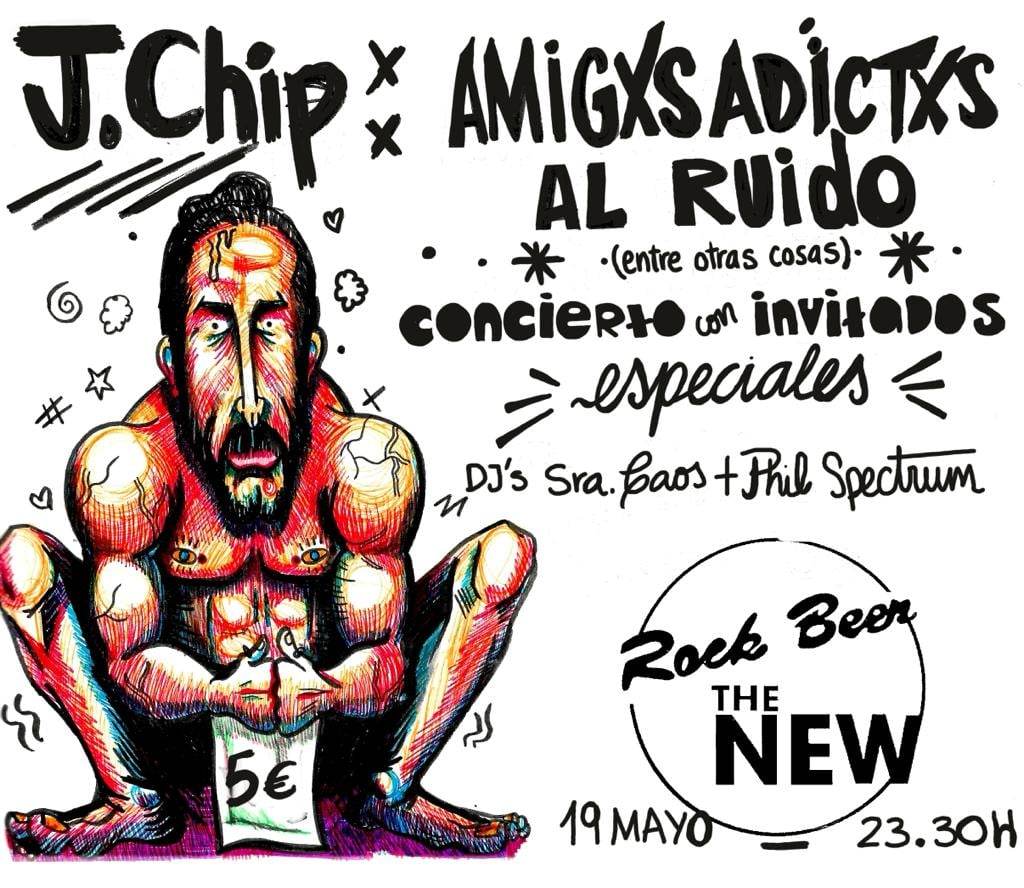 J. Chip y Amigxs adictos al ruido presentan este concierto con invitados especiales en la sala Rpck Beer the New el 19 de mayo a las 23:30 h.