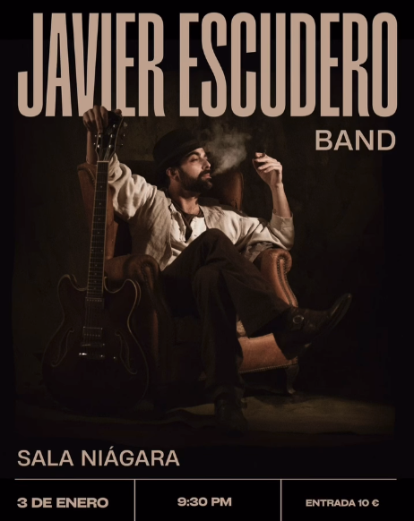 Javier Escudero estará este viernes día 3, a partir de las 21:30h, con su banda en la sala Niágara tocando temas propios.