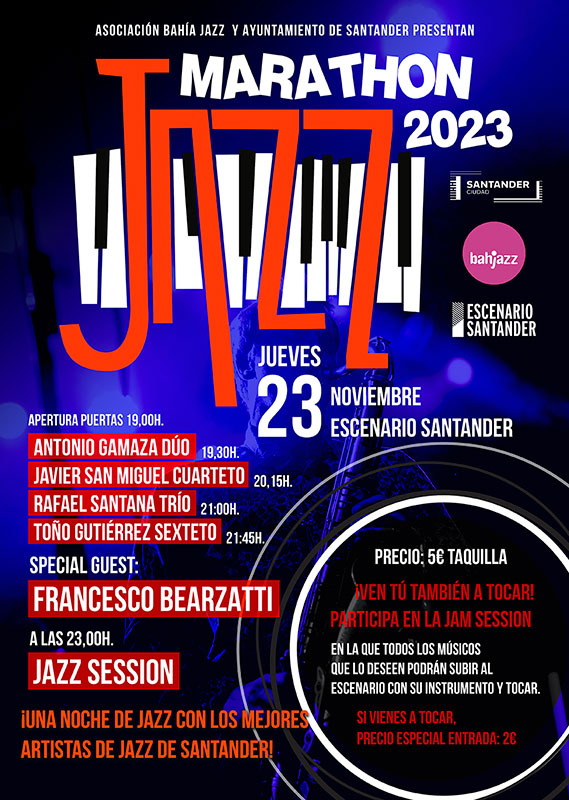 Escenario Santander vivirá el jueves 23 de noviembre el Jazz Marathon, un evento musical que estará liderado por el afamado trompetista y clarinetista italiano Francesco Bearzatti y en el que participarán los mejores músicos de jazz de la ciudad.