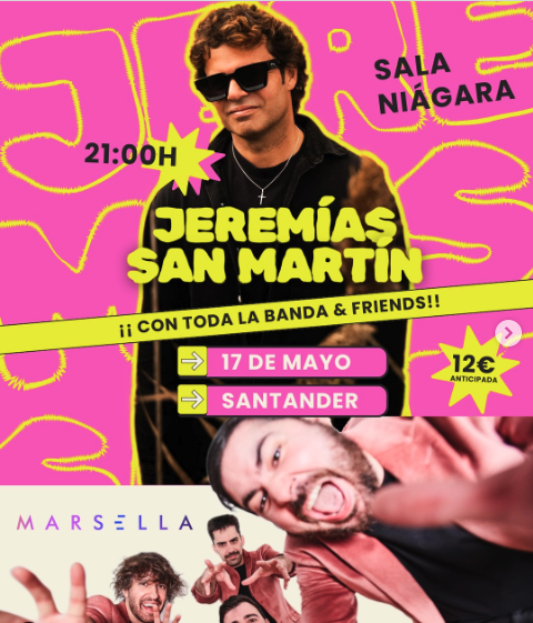 Conciertos de Jeremías San Martín y Marsella en la Sala Niágara el sábado 17 de mayo a las 21:00h.