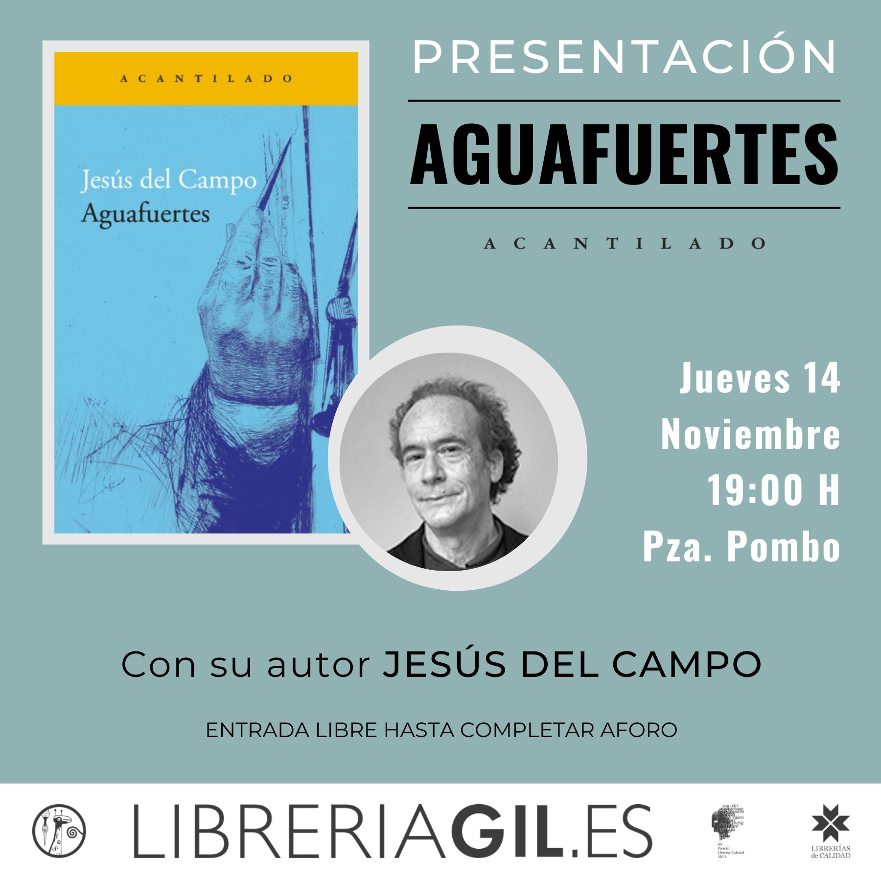 El jueves 14 de noviembre, a las 19:00 h. la Librería Gil de la Plaza de Pombo acoge la presentación de "Aguafuertes, de Jesús del Campo (Editorial Acantilado).
