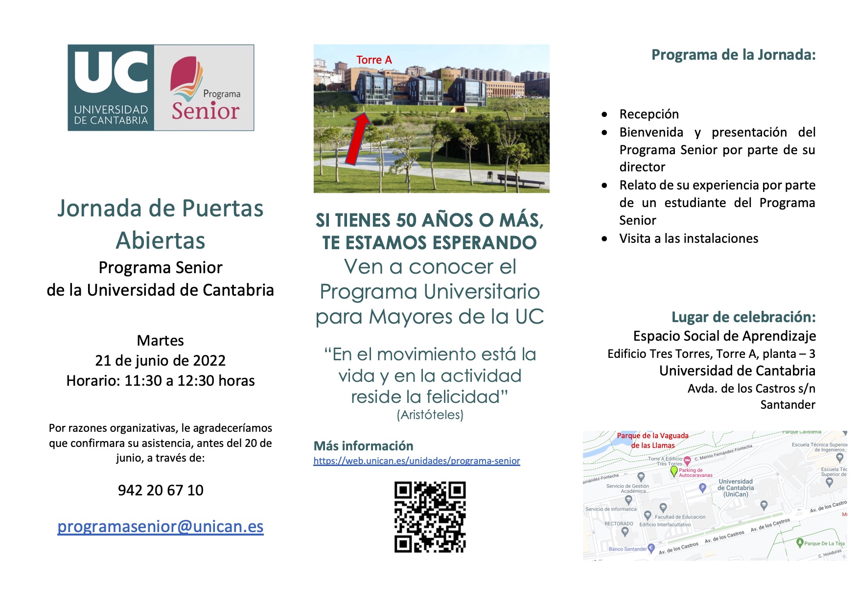 El Programa Senior es un programa propio de la Universidad de Cantabria cuya finalidad es poner el conocimiento acumulado y generado por la Universidad al alcance de toda la población adulta y en el que pueden matricularse todas las personas que hayan cumplido 50 años con independencia de su nivel previo de formación académica.