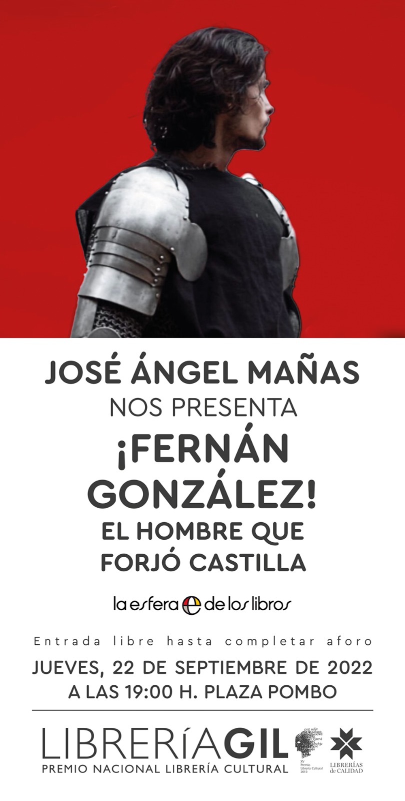 José Ángel Mañas presenta su novela “¡Fernán González!” el 22 septiembre a las 19:00h en Librería Gil.