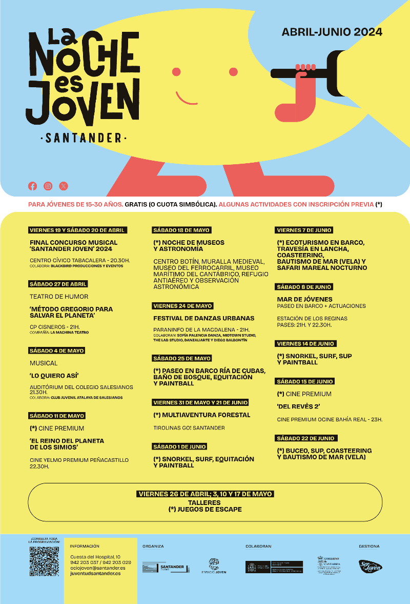 Actividades destinadas a jóvenes de 15-30 años (nacidos de 1993 a 2009). No se amplía la edad hasta los 35 años, ni siquiera en lista de espera.