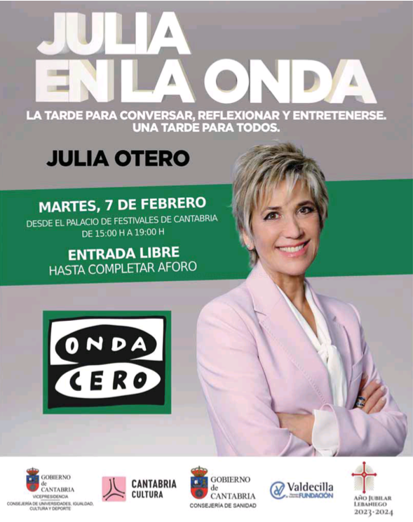 Julia Otero y todo su equipo se trasladarán a Santander el próximo martes 7 de febrero para emitir en directo el programa “Julia en la Onda” desde el Palacio de Festivales.