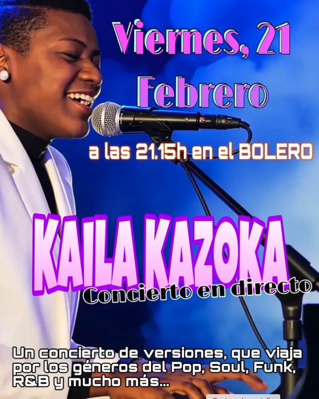 Música en directo en el Bar Bolero con la actuación de Kaila Kazoka el viernes 21 de febrero a las 21:15 horas.
