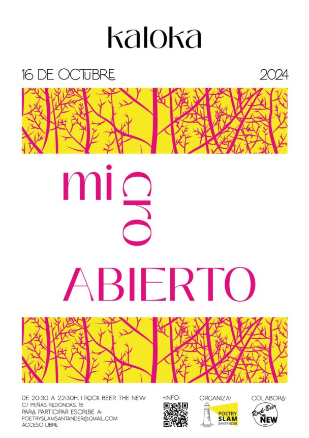 ¿Quieres participar? Escribe a poetryslamsantander@gmail.com con tu nombre y apellidos o el nombre con el que quieras participar. En el asunto indica “Micro abierto”. Pero, tranqui, que si te quieres animar en el último momento, también puedes…