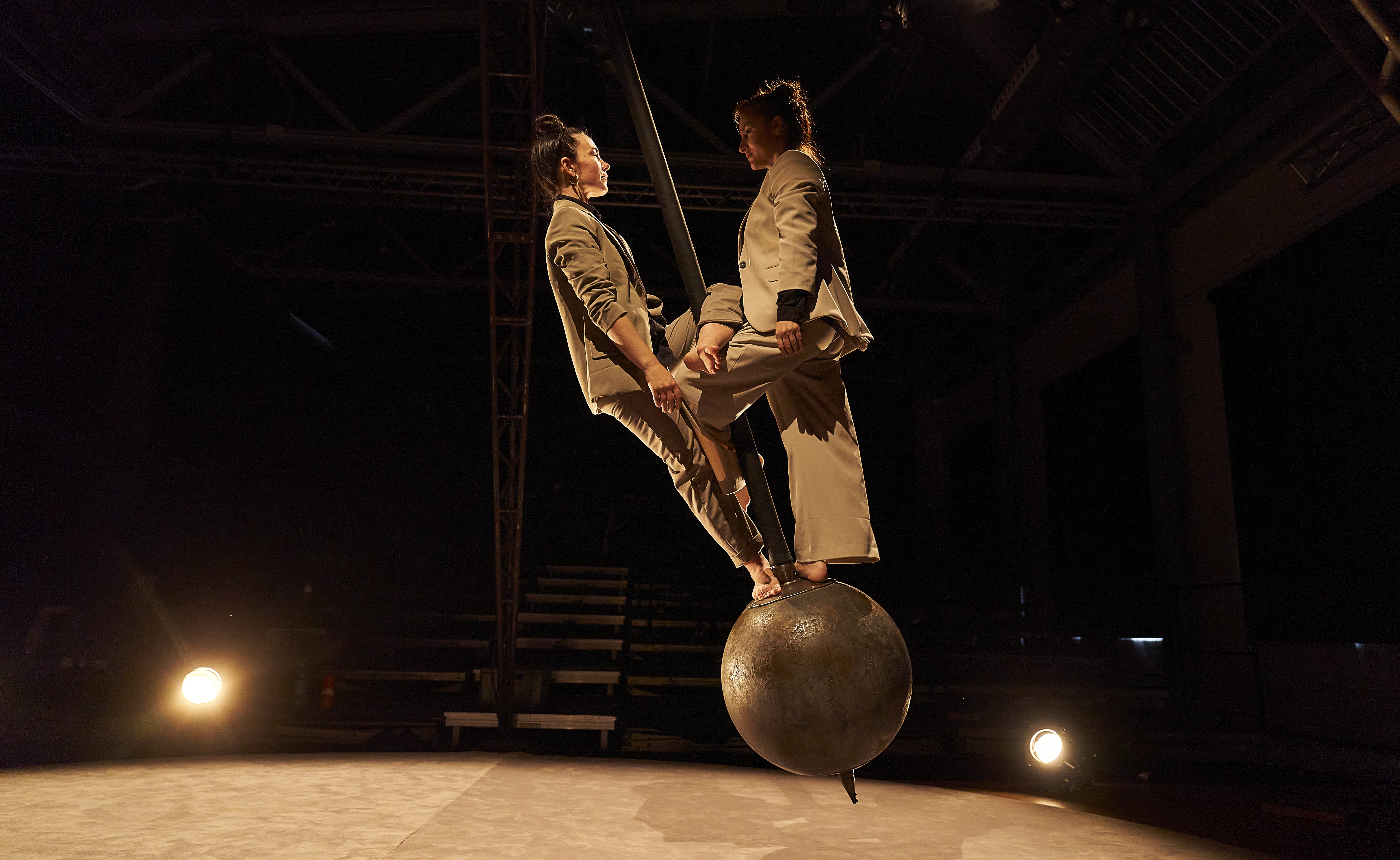 “Lady Panda” es un espectáculo con una estética cuidada, de un minimalismo oriental. Preside el espacio un péndulo que nos recuerda este movimiento continuo que es la existencia, hecha de virajes, de extremos y de contrastes. Ese momento misterioso en que aceptamos el sacrificio y emprendemos el giro, con su poder de sacudirlo todo.