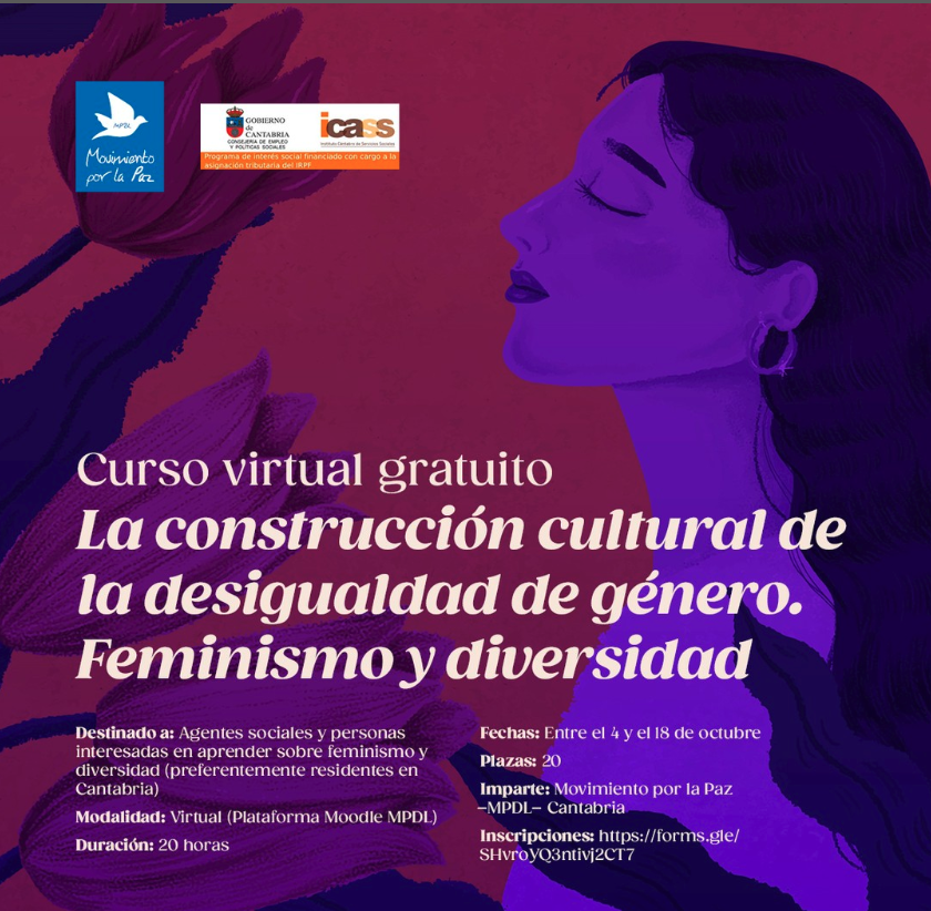 Destinado a agentes sociales y demás personas interesadas en aprender sobre feminismo y diversidad (preferentemente residentes en Cantabria), el curso está impartido por Movimiento por la Paz – MPDL Cantabria.