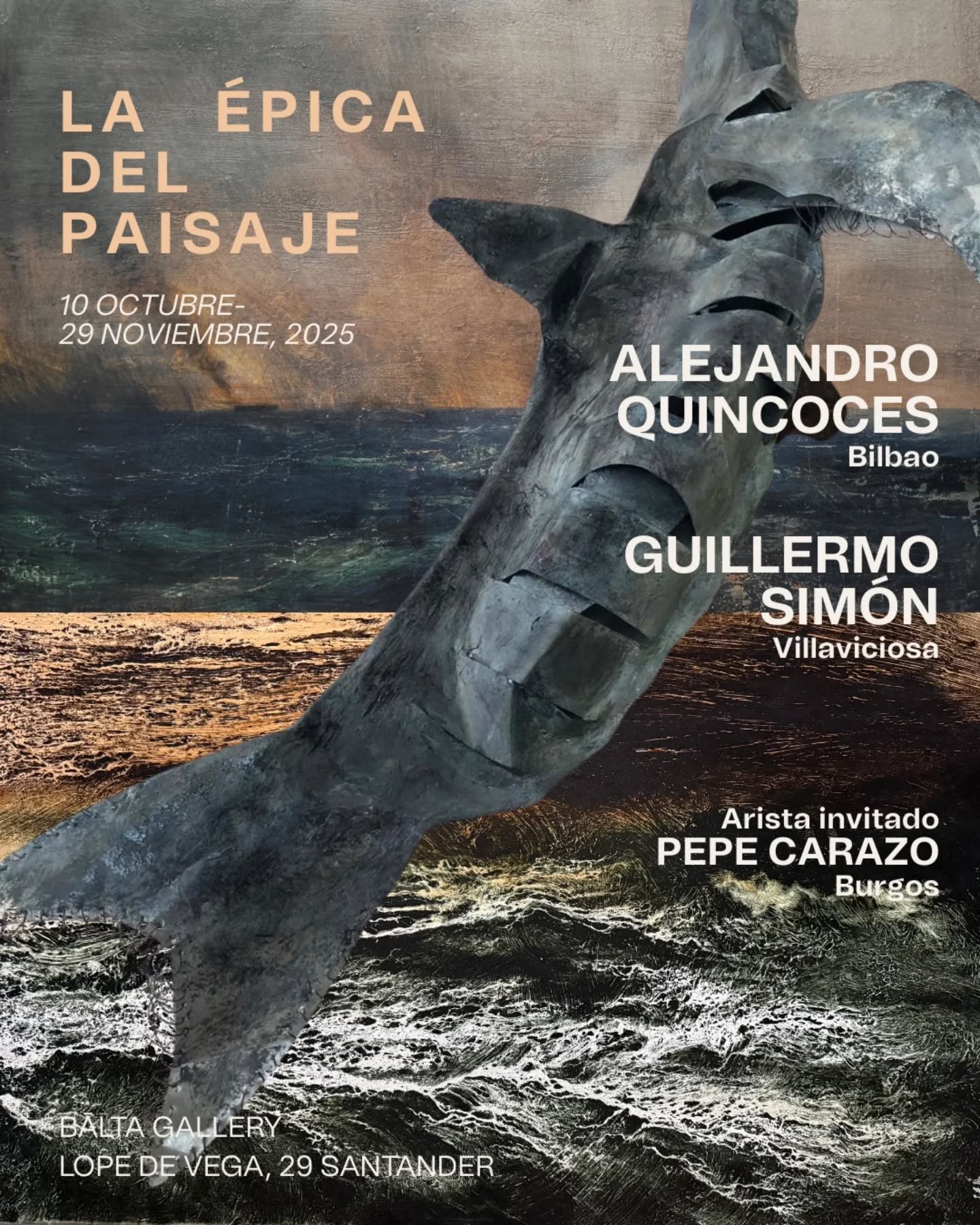 Del 10 de octubre al 29 de noviembre se puede visitar en Bālta Gallery (C/Lope de Vega 29) la nueva exposición "La épica del paisaje" de Alejandro Quincoces y Guillermo Simón, con Pepe Carazo como artista invitado.