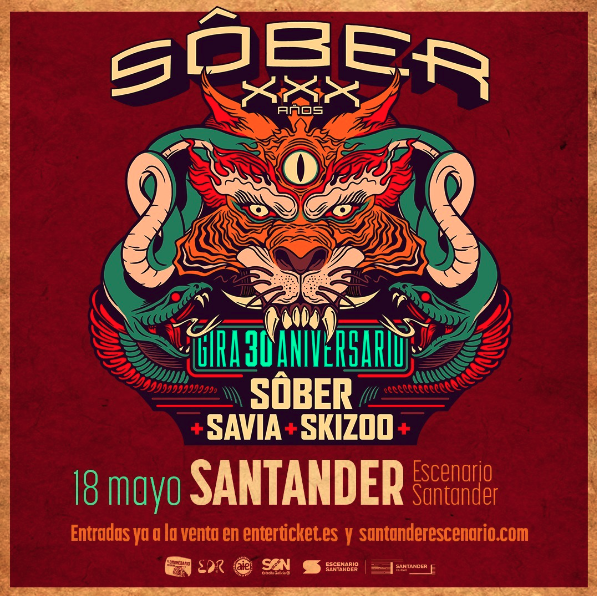 La gira de este 30 aniversario arrancó el día 8 de marzo en el espacio Live Las Ventas de Madrid, y ha llevado ya a Sôber por salas como Razzmatazz (Barcelona) y Repvblicca (Valencia). A Santander llegan tras haber actuado en el Viña Rock el pasado 3 de mayo. A lo largo de este periplo, los de Sôber actúan acompañados por Savia, la antigua banda del líder del grupo, y por Skizoo, que fue la formación de los guitarristas de Sôber, Jorge Escobedo y Antonio Bernardini. Tanto Savia como Skizoo fueron creadas en 2005 aprovechando un parón de Sôber y se mantuvieron en activo hasta el año 2009.