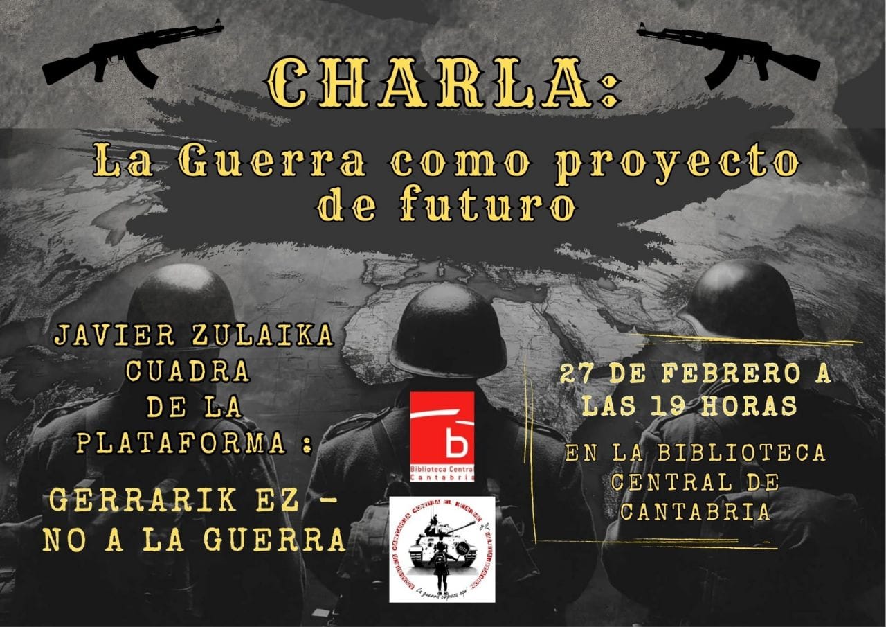 Para analizar este nuevo orden mundial internacional, el viernes 27 de febrero a las 19 h en la Biblioteca Central de Santander, contarán con Zavier Zulaika , miembro del colectivo Gerrarik Ez, que ofrecerá una charla en la que también se abordarán la razones que justifican la creación de un potente movimiento antimilitarista.