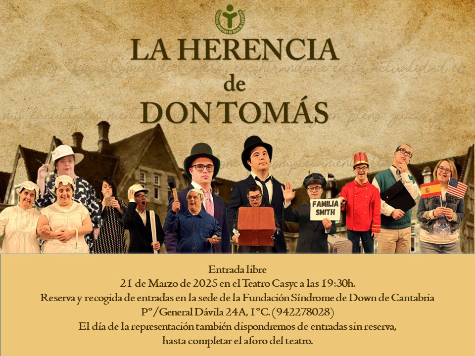 Con motivo del Día Mundial del Síndrome de Down, la Fundación Síndrome de Down de Cantabria ha preparado la obra de teatro “La herencia de Don Tomás”, que se representará en CASYC el 21 de marzo a las 19:30h.
