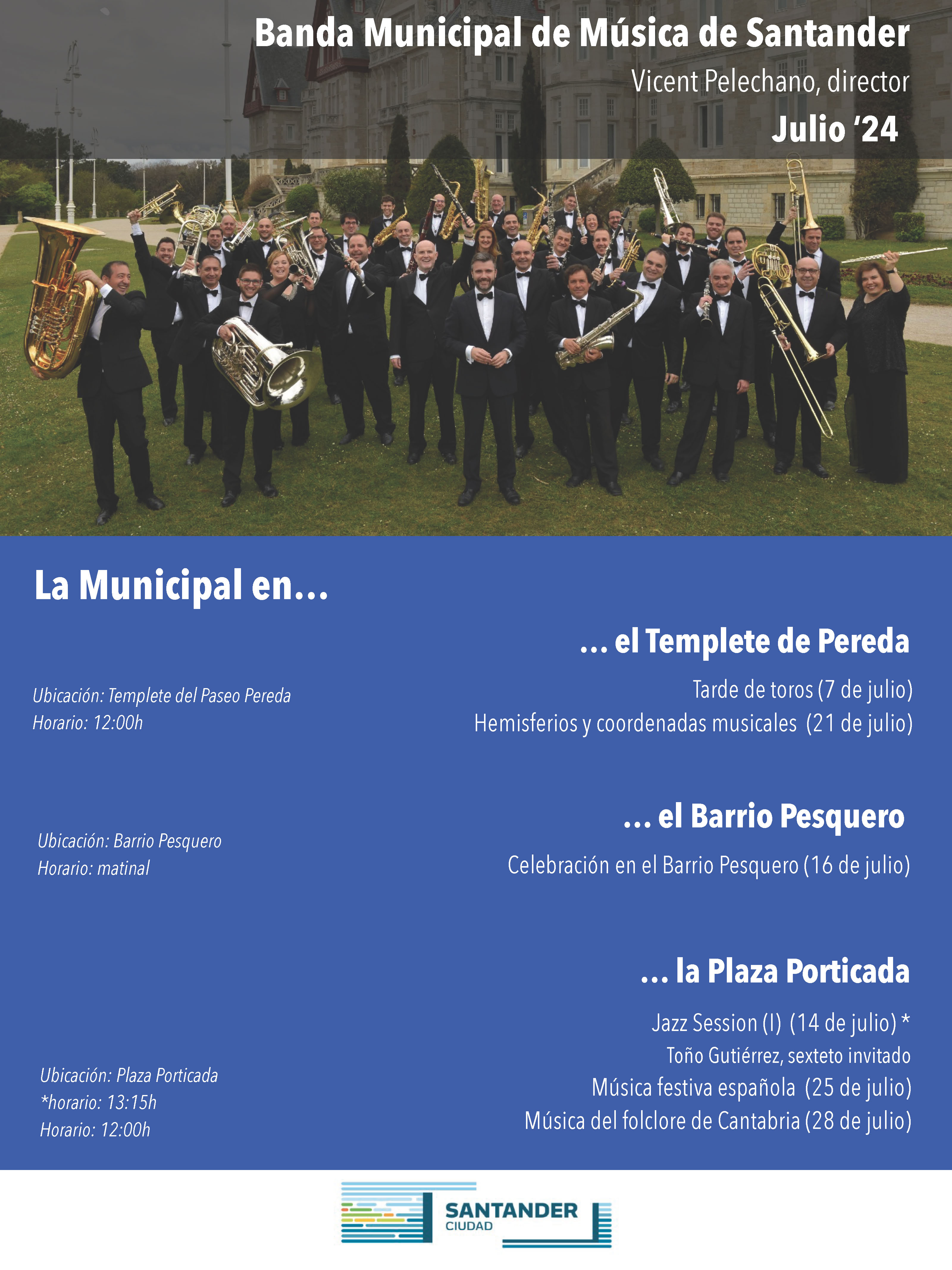 La Banda Municipal de Música de Santander ofrece este mes de julio varios conciertos en la Plaza Porticada.
