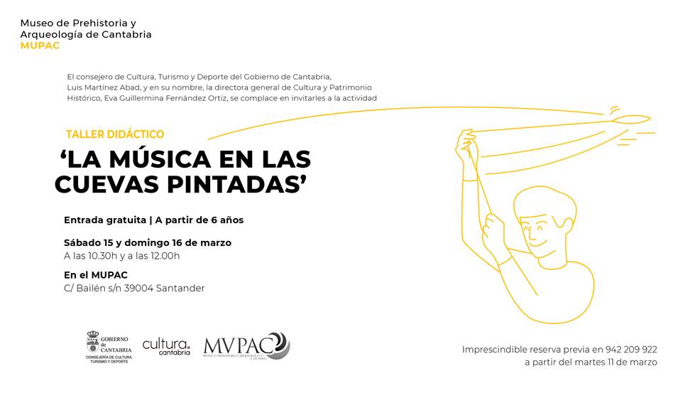 El MUPAC organiza el taller “La música en las cuevas pintadas” el sábado 15 y el domingo 16 de marzo, a las 10:30 y 12:00 horas.