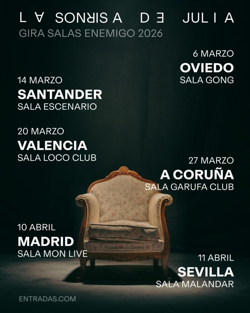La Sonrisa de Julia confirma las primeras fechas de la gira de presentación en salas de “Enemigo”, su esperado séptimo álbum, que se publicará en febrero de 2026. Este anuncio supone un regreso especialmente significativo para la banda, referente imprescindible del indie nacional, que pone fin a un parón discográfico de siete años.