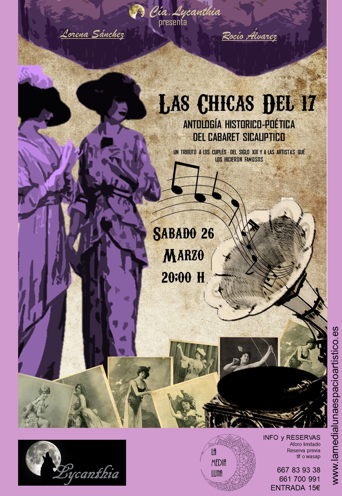 Espectáculo de variedades a cargo de la Compañía Lycanthia, donde el humor, las canciones picaronas y la diversión están garantizadas.