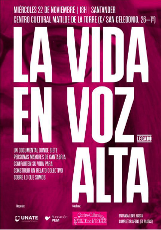 “Legado Cantabria” (La vida en voz alta) es un proceso de construcción de la memoria oral a través de las historias de vida de las personas mayores. Tiene como objetivo poner en valor las experiencias, el éxito de la longevidad y el arraigo en el territorio. Participan personas mayores de 70 años que relatan su experiencia vital para ponerla a disposición de las generaciones actuales y venideras.