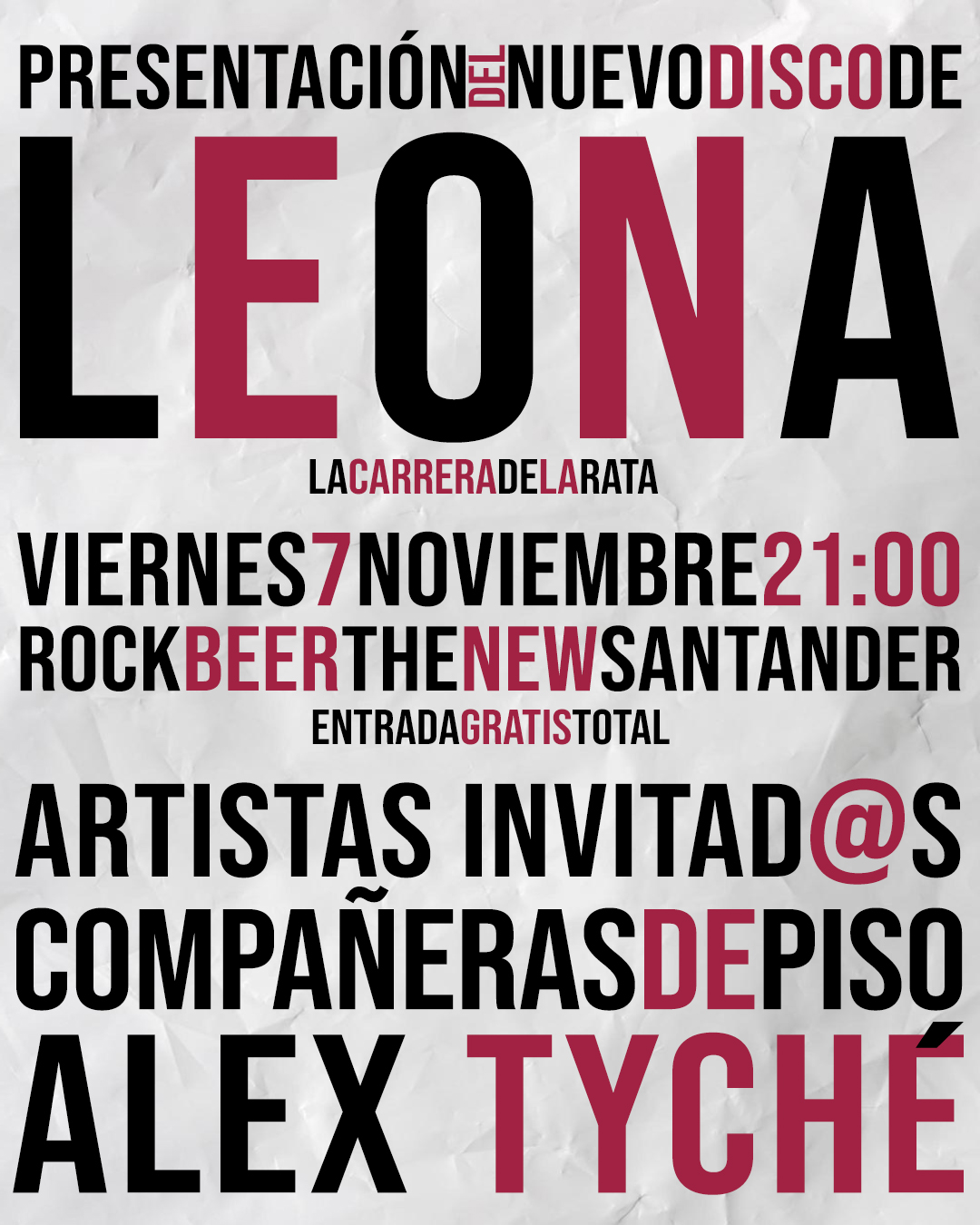 Este concierto de presentación se realizará en la sala Rock Beer The New y servirá para presentar en directo las diez nuevas canciones, en un concierto especial en el que contarán con la compañía de artistas de la talla de Alex Tyché y de las DJ Compañeras de Piso, quienes se encargarán de abrir la noche y anteceder la actuación de Leona.